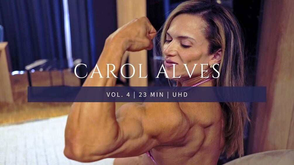 In this wonderful film, Carol, in a competition suit after her contest participation in Romania, just poses and flexes her perfect muscles. It should be noted that she retains her femininity and sophistication as a woman, but she is so strong and charming.
